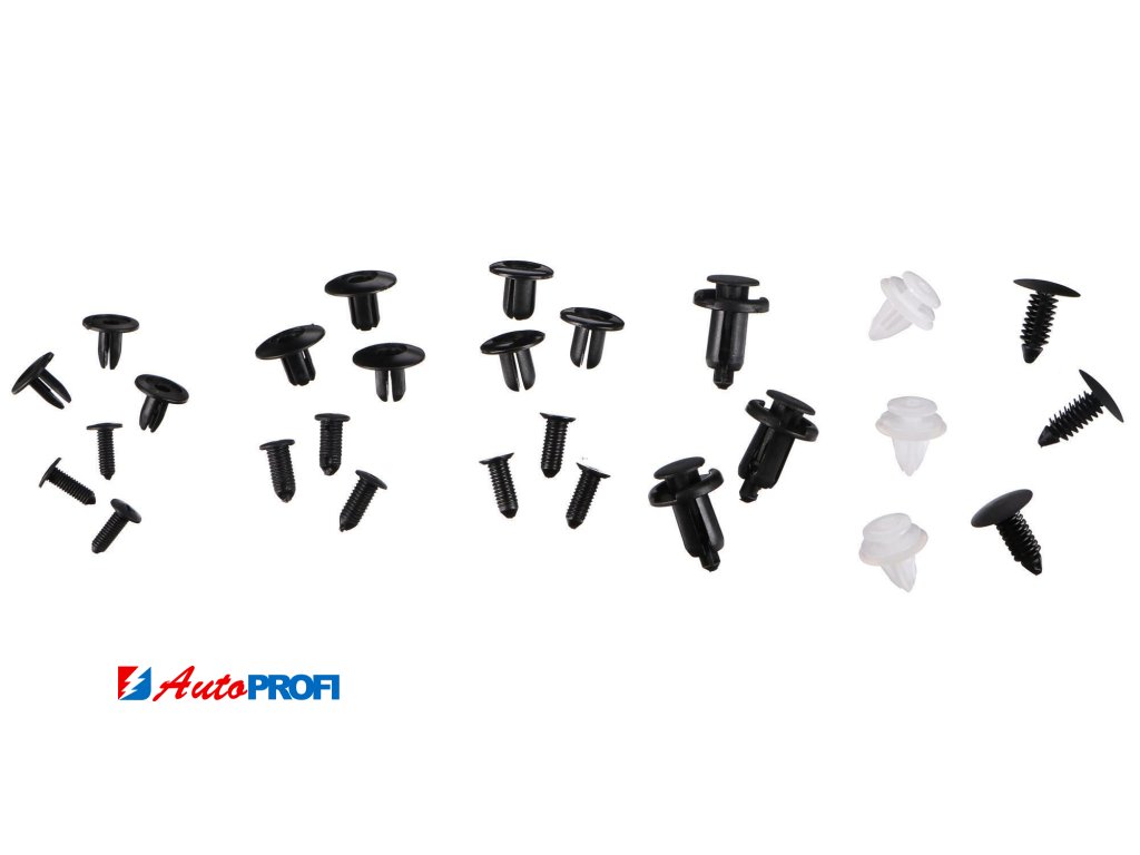 - 6 druhů příchytek a kolíků pro fixaci nárazníků, blatníků, krytů, čalounění (kufru), sedadel a obložení, uchycení dveřích panelů