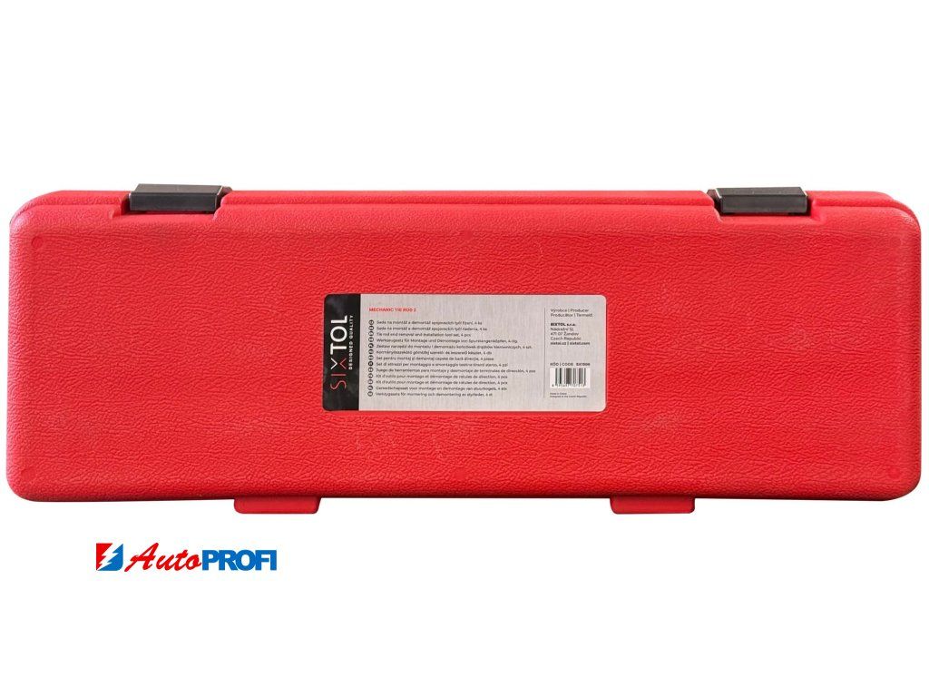 Sada SIXTOL MECHANIC TIE ROD 2 je určena pro montáž a demontáž spojovacích tyčí řízení a díky čtyřem pevným dílům umožňuje efektivní práci při servisních zásazích na podvozku vozidla. Konstrukce jednotlivých prvků zajišťuje spolehlivé uchopení tyče a její bezpečné povolení nebo utažení bez zbytečného poškození okolních částí. Sada je vhodná při výměně opotřebovaných dílů řízení i při běžné údržbě a kontrole podvozkových komponentů. Vše je uloženo v plastovém kufru, který usnadňuje přenášení a přehledné skladování nářadí.Hlavní výhody: