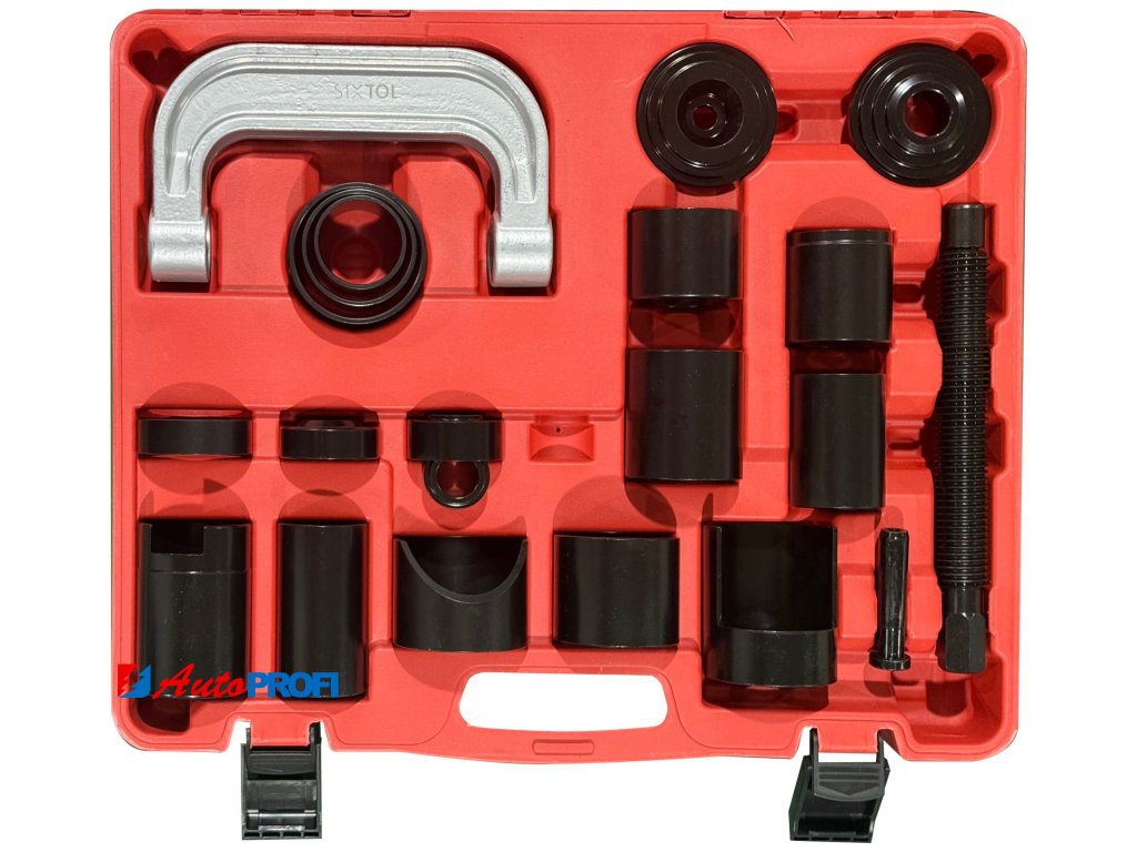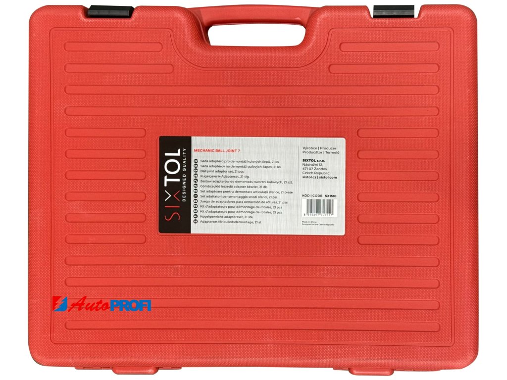 Sada adaprérů SIXTOL MECHANIC BALL JOINT 7 je určena pro demontáž kulových čepů a díky 21dílnému provedení umožňuje široké možnosti přizpůsobení různým typům a velikostem spojů na nápravě vozidla. Adaptéry jsou navrženy pro použití s lisovacím mechanismem, který zajišťuje rovnoměrné působení síly při vytlačování čepu z těhlice nebo ramene bez nadměrného zatížení okolních dílů. Sada je vhodná při výměně opotřebovaných kulových čepů i při opravách a údržbě zavěšení kol. Všechny součásti jsou přehledně uloženy v plastovém kufru, který usnadňuje přenášení a organizaci nářadí.Hlavní výhody: