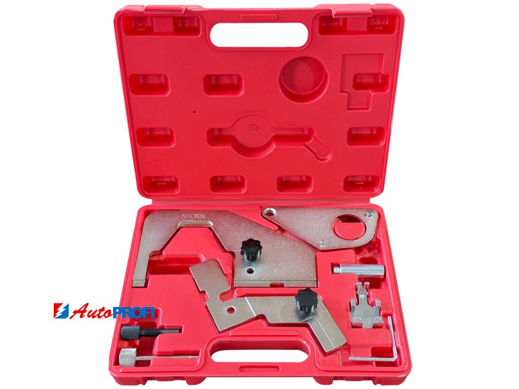 Sada pro aretaci motoru SIXTOL MECHANIC ENGINE TIMING SET 41 je určena pro přesné zajištění vačkové a klikové hřídele při nastavování časování motorů Ford a Land Rover 2.0T. Umožňuje bezpečnou fixaci rozvodových komponentů během servisních zásahů. Přípravky pomáhají udržet jednotlivé části motoru v přesné poloze při výměně rozvodového řemene nebo při kontrole správné synchronizace, což je zásadní pro spolehlivý chod motoru. Konstrukce nástrojů zajišťuje pevné uchycení a stabilitu při práci, čímž přispívá k přesnému a kontrolovanému postupu při opravách rozvodového mechanismu. Jednotlivé díly jsou přehledně uloženy v plastovém kufru, který usnadňuje organizaci nářadí i jeho přenášení.Hlavní výhody: