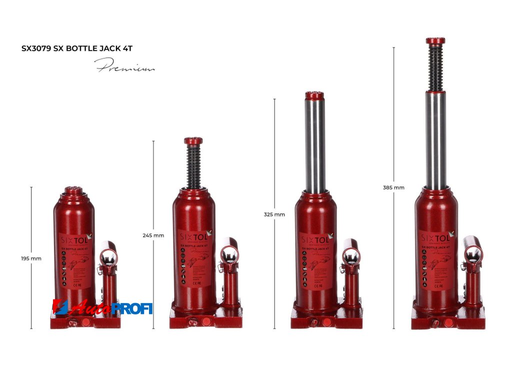 Profesionální hydraulický zvedák panenka SX BOTTLE JACK PREMIUM je navržen pro maximální spolehlivost a bezpečnost při zvedání automobilů, přívěsů a dalších těžkých břemen. Celosvařená konstrukce bez spojů zajišťuje vyšší odolnost proti úniku oleje, delší životnost a umožňuje profesionální použití i v náročných podmínkách. Díky kompaktním rozměrům je zvedák snadno přenosný a ideální nejen pro garážová pracoviště, ale i pro mobilní servisní zásahy. Nastavitelný šroub v horní části umožňuje přesné nastavení výšky pro bezpečné zvedání vozidla.Hlavní výhody: