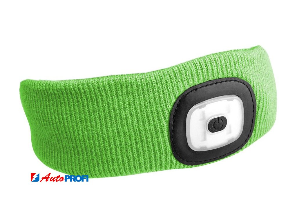 SIXTOL SX5024 Čelenka s čelovkou 180lm, nabíjecí, USB, uni velikost, bavlna/PE, fluorescentní zelená