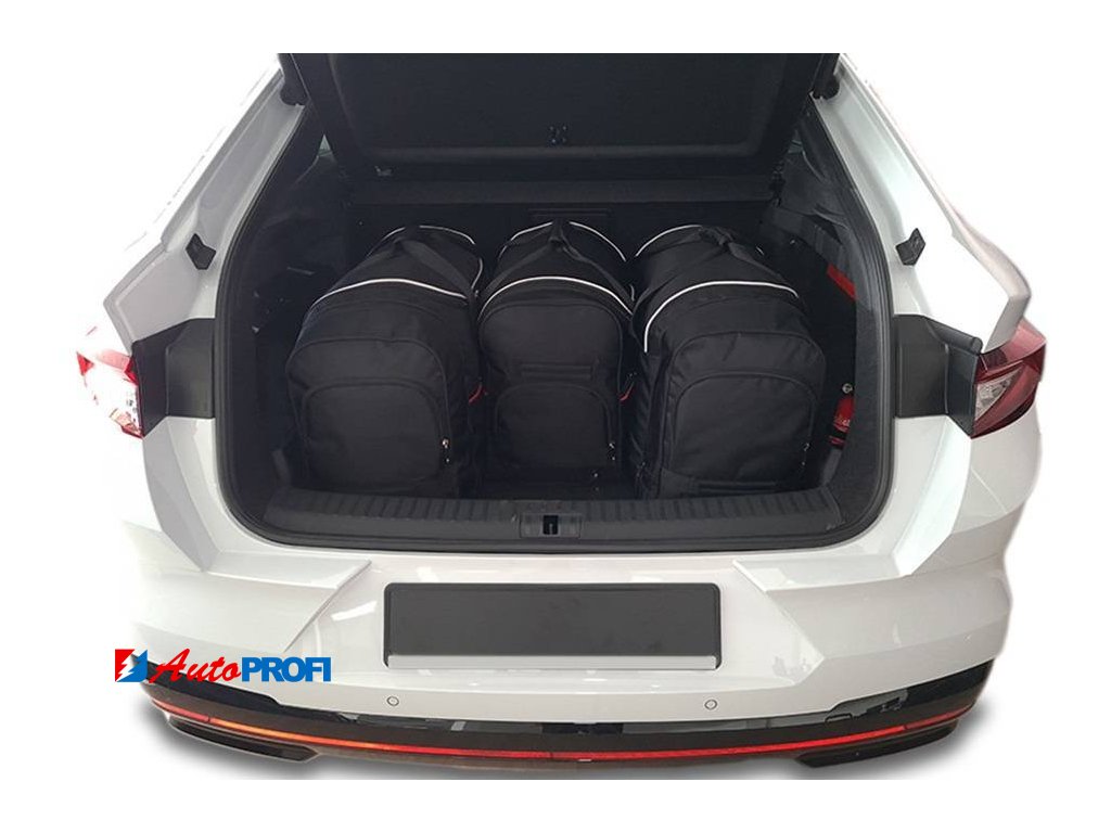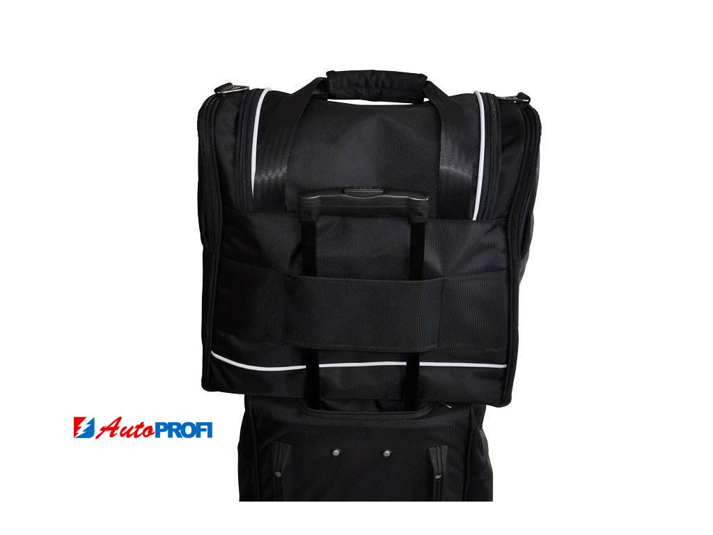 Asymetricky zkosená strana cestovních tašek KJUST zajišťuje, že taška přesně přiléhá k zadnímu sedadlu automobilu a umožňuje plně využít zavazadlový prostor.
