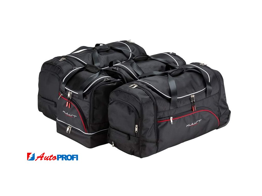 Asymetricky zkosená strana cestovních tašek KJUST zajišťuje, že taška přesně přiléhá k zadnímu sedadlu automobilu a umožňuje plně využít zavazadlový prostor.