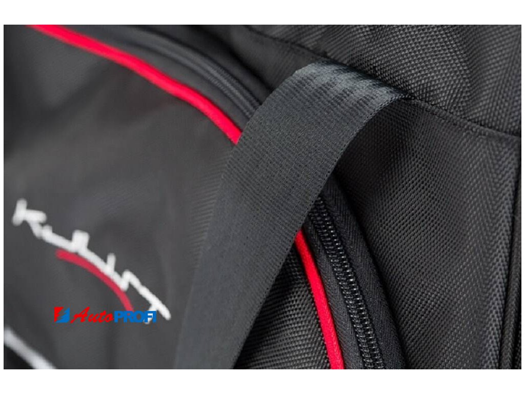 Asymetricky zkosená strana cestovních tašek KJUST zajišťuje, že taška přesně přiléhá k zadnímu sedadlu automobilu a umožňuje plně využít zavazadlový prostor.