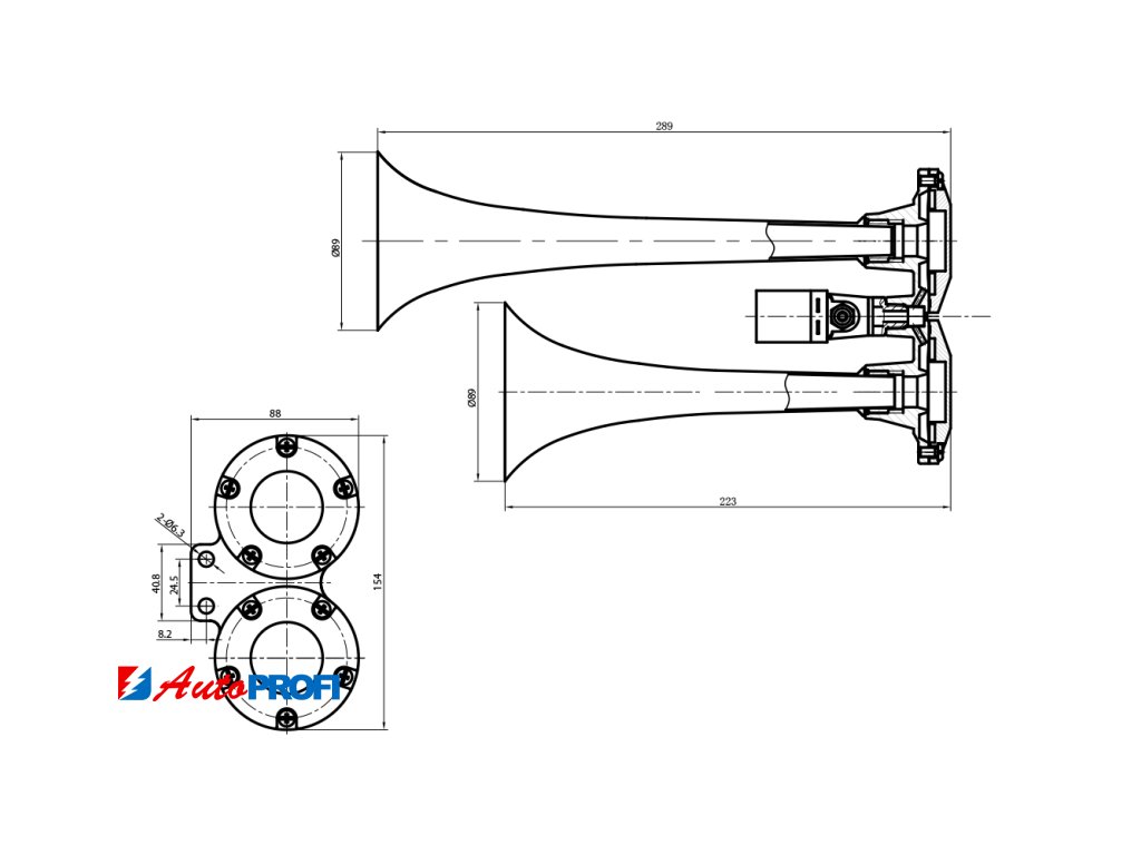 2-trubková fanfára určená pouze do vozidel s vlastním rozvodem stlačeného vzduchu. Pěkný design i způsob uchycení umožňují pohledovou montáž na karoserii vozu.