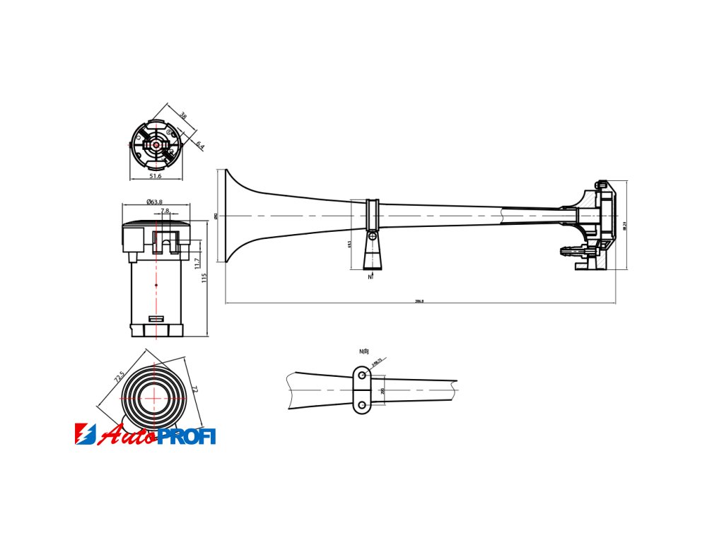 Fanfára poháněná vzduchovým kompresorem dodávaným v sadě. Trubka je vyrobena z velice odolné zinkové slitiny a povrch je pochromován. Je vhodná pro pohledovou montáž na karoserii vozu nebo do náročnějších klimatických podmínek. V sadě je dodávána také hadice a drobný montážní materiál.