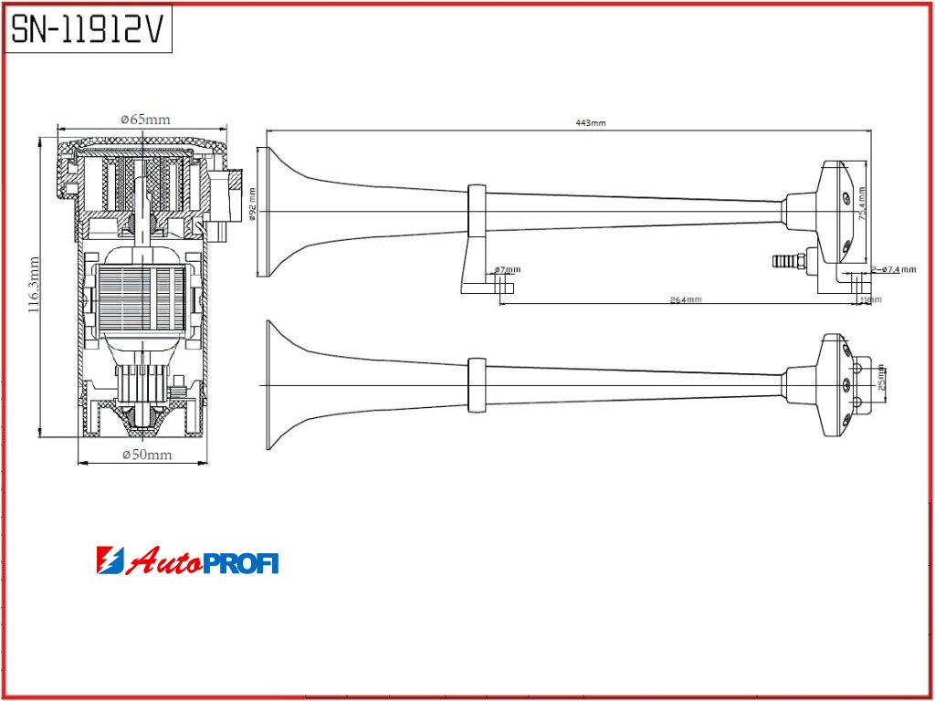 SN-119/12V Singl-fanfára 443mm, 12V stálý tón s kompresorem