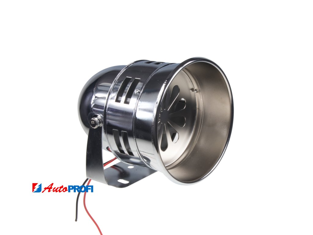 Vzduchová siréna 12V. Jedná se o velmi hlasitou sirénu s intenzitou 118 dB! Tato siréna je poháněna motorem a poskytuje autentický a velmi hlasitý zvuk. Siréna má odolnou kovovou konstrukcí s chromovaným povrchem. Určeno pro použití pro osobní automobily, nákladní automobily, SUV, dodávky, čluny, traktory, motocykly a čtyřkolky s 12V napájecím systémem!