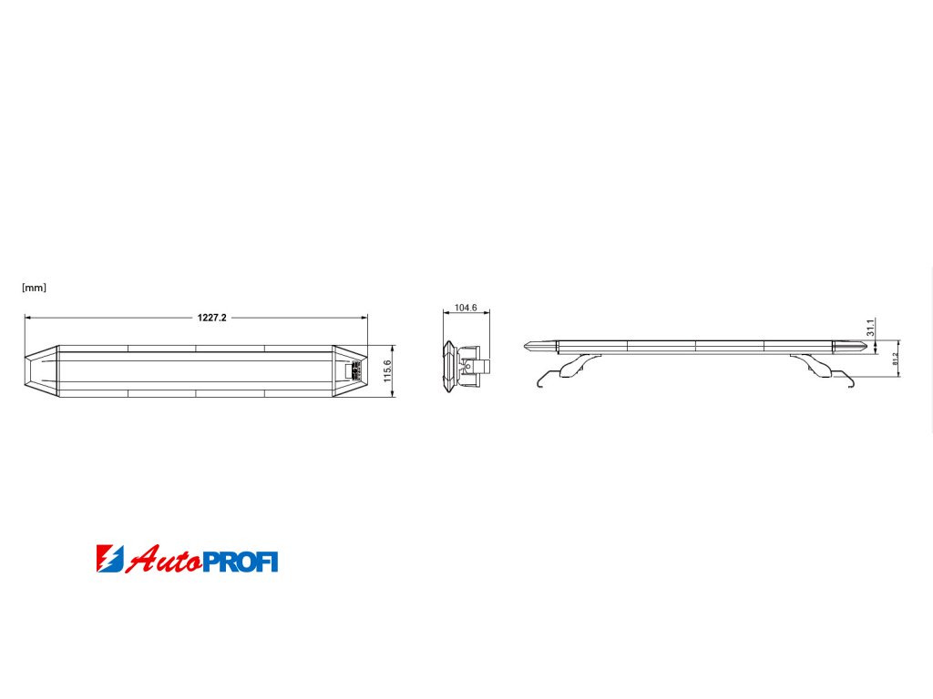 • rozměry: 1227,2 mm x 115,6 mm x 104,6 mm, výška: 31,1 mm
