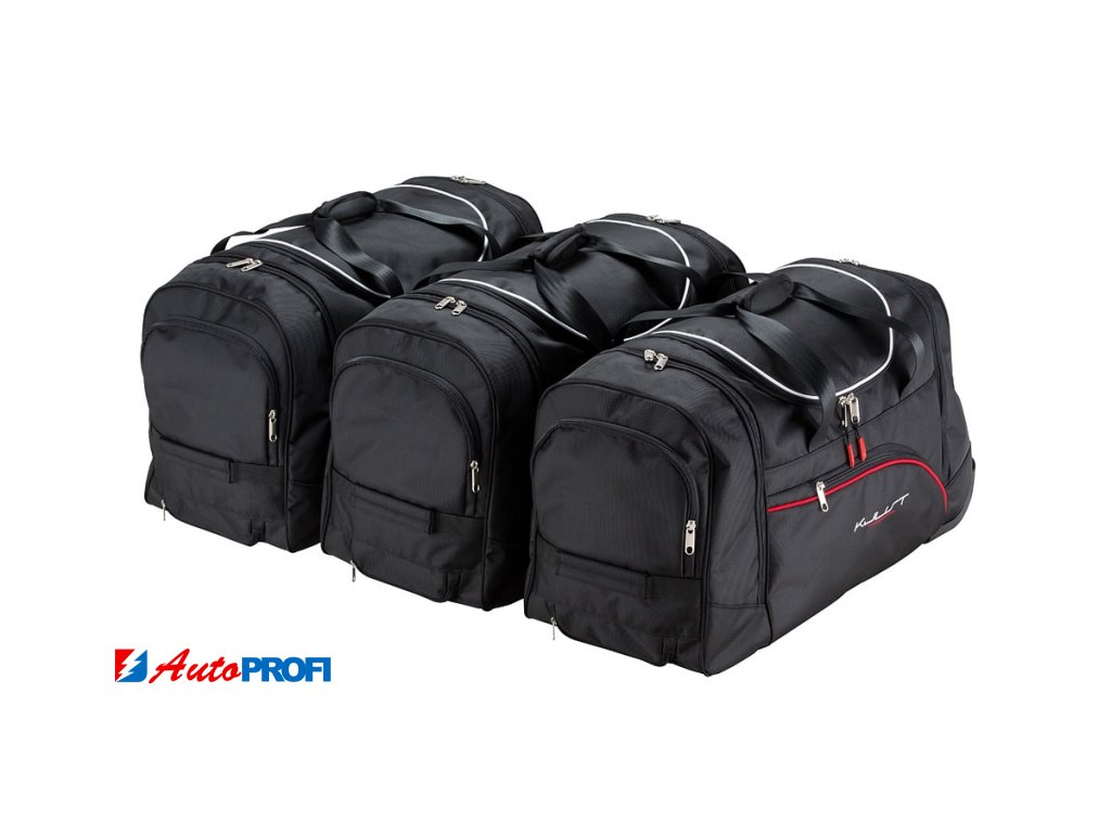 Asymetricky zkosená strana cestovních tašek KJUST zajišťuje, že taška přesně přiléhá k zadnímu sedadlu automobilu a umožňuje plně využít zavazadlový prostor.