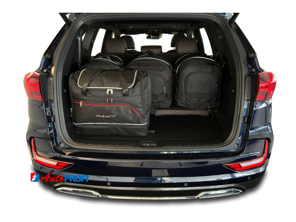 Asymetricky zkosená strana cestovních tašek KJUST zajišťuje, že taška přesně přiléhá k zadnímu sedadlu automobilu a umožňuje plně využít zavazadlový prostor.