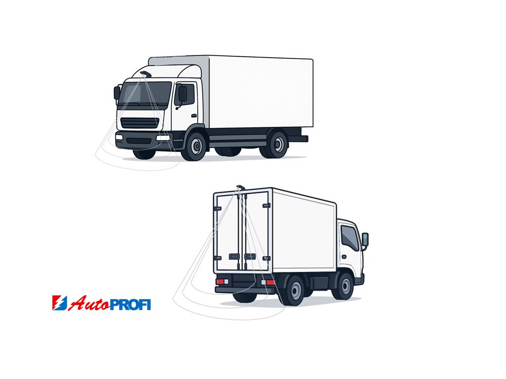 Řešení problému: špatný výhled před přední část nákladního vozu či dodávky a následnému přehlédnutí například chodce či cyklisty, nebo když na zadní dveře nelze jen tak namontovat couvací kameru.