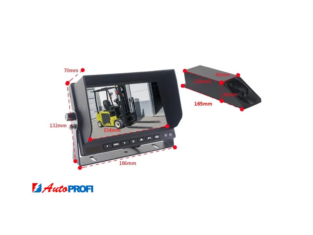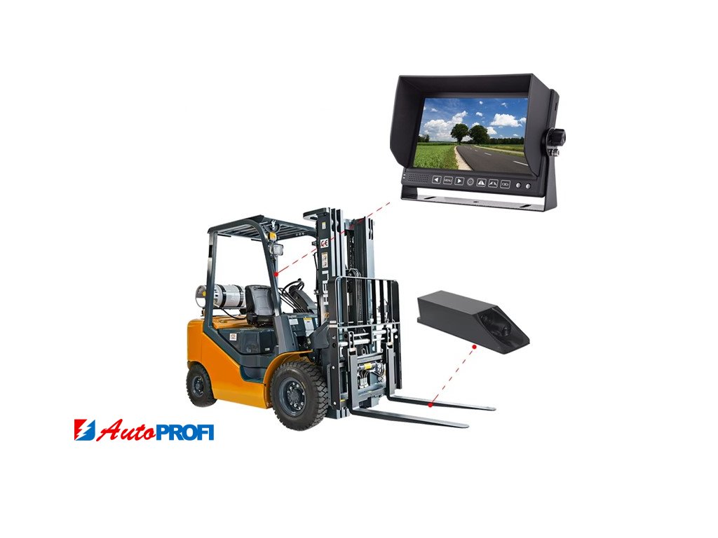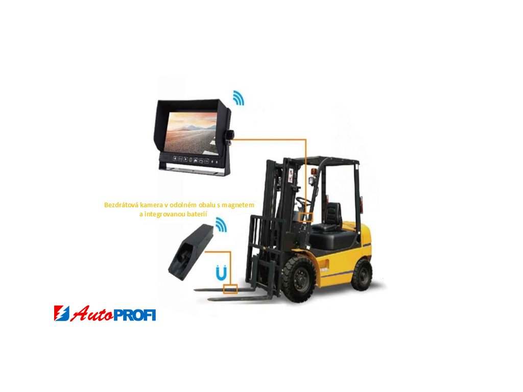 Sada LCD monitoru 7" a AHD kamery s bezdrátovým digitálním přenosem signálu určeno pro vysokozdvižné vozíky či stavební stroje.