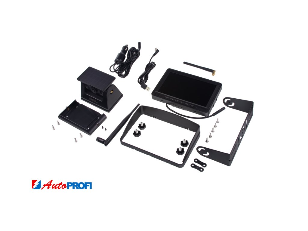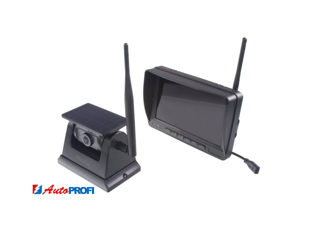 Sada LCD monitoru 7" a kamery napájenou pomocí akumulátoru a solárního panelu s bezdrátovým digitálním přenosem signálu.