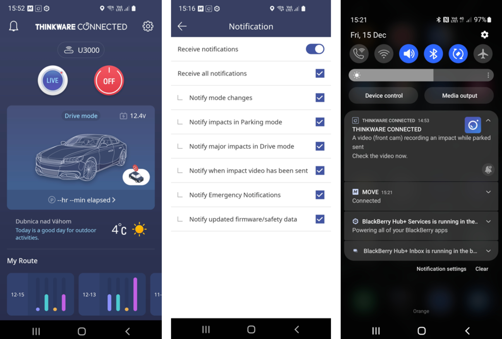 FILTR NOTIFIKACÍ: (app Thinkware Connected)