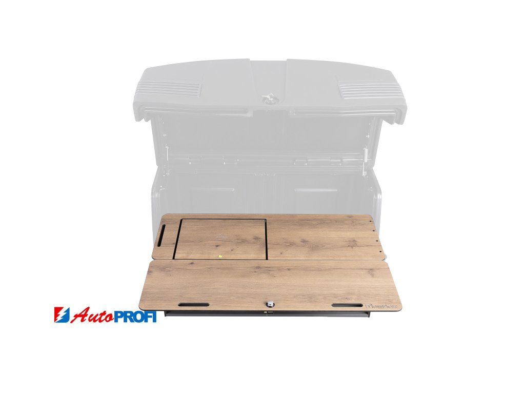 Camper Life Kit je kus nábytku, který vám umožní přeměnit nosič zavazadel TowBox Camper na provizorní kuchyň. Díky tomu se vyhnete zápachu z jídla uvnitř obytného vozu nebo dodávky.