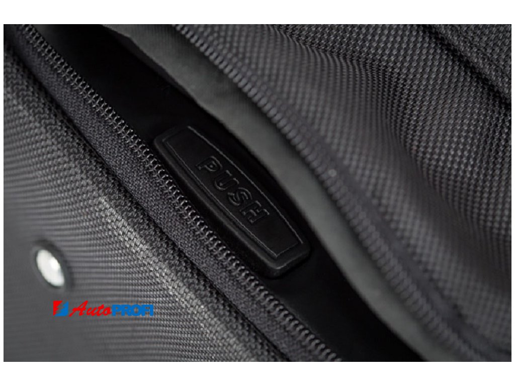 Asymetricky zkosená strana cestovních tašek KJUST zajišťuje, že taška přesně přiléhá k zadnímu sedadlu automobilu a umožňuje plně využít zavazadlový prostor.