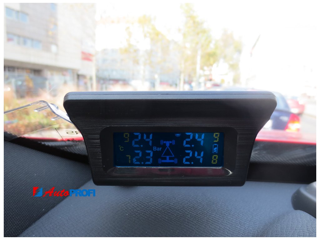 Systém pro kontrolu tlaku a teploty v pneumatikách s displejem a solárním napájením. Čidla jsou určena pro vnější montáž, proto montáž zvládnete svépomocí (pouze se vymění čepička ventilku). Montáž displeje se provádí nalepením magnetického držáku displeje na sklo, následně vložení displeje do držáku.