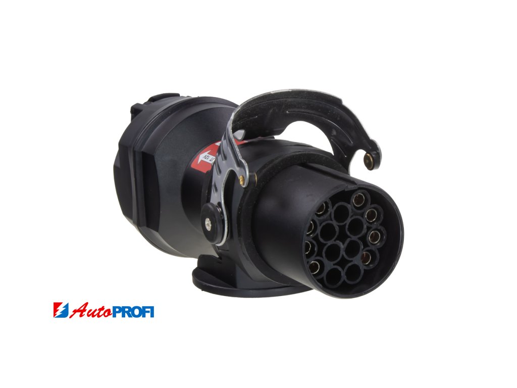 Určeno pro 15pin (ISO 12098) zásuvku na vozidle 24 V, 13pin zástrčku (ISO 11446) na přívěsu 12 V.