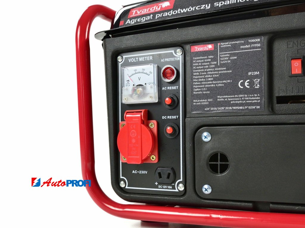 Profesionální elektrocentrála TVARDY vybavená dvoutaktním spalovacím motorem o objemu 63 ccm a výkonu 2 HP. Tento generátor je schopen generovat okamžitý maximální výkon 720 W. Konstantní výkon, kterým lze tento generátor zatížit, je 650 W. Palivová nádrž o objemu 4,2 litru umožňuje plynulou a nepřerušovanou práci (při průměrném zatížení) po dobu cca 6 hodin. Elektrocentrála je také osazena robustním kovovým rámem, který ji chrání před poškozením a usnadňuje její přenos.Hlavní výhody: