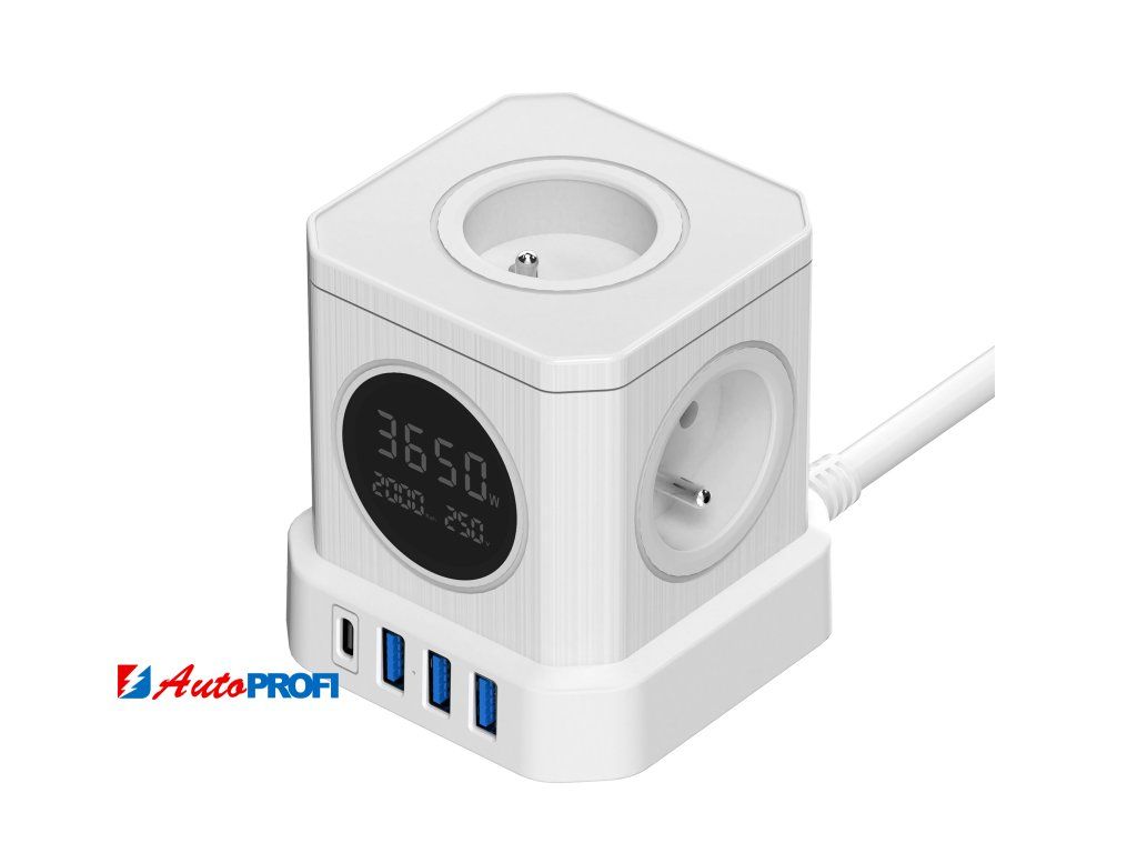 - Čtyři USB porty: 3× USB-A (5V 2.4A celkem) a 1× USB-C (20W) pro rychlé nabíjení mobilních zařízení, tabletů a dalších elektronických přístrojů.