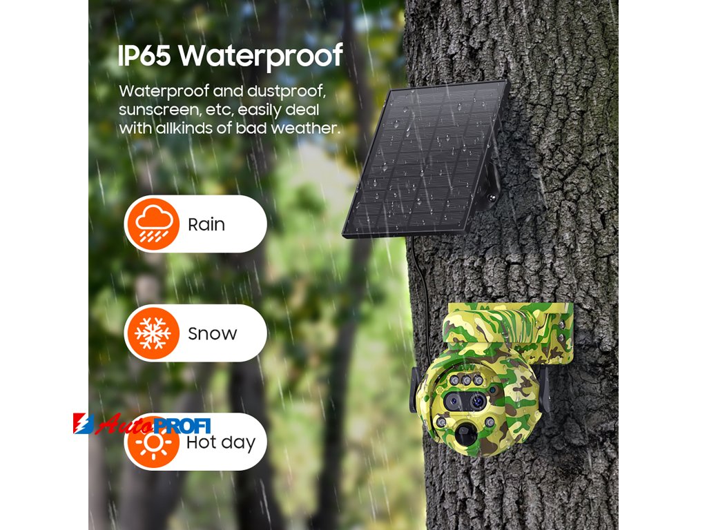 Kamera je vybavena třemi vestavěnými bateriemi s kapacitou 2600mAh, které jsou napájeny solárním panelem. Tím zajišťuje nepřetržitý provoz bez nutnosti připojení k elektrické síti. Solární kamera Viking HDs04 4G je odolná vůči extrémním teplotám (-30°~+60°) a vlhkosti (0%~90%), což ji činí ideální pro venkovní i vnitřní použití.