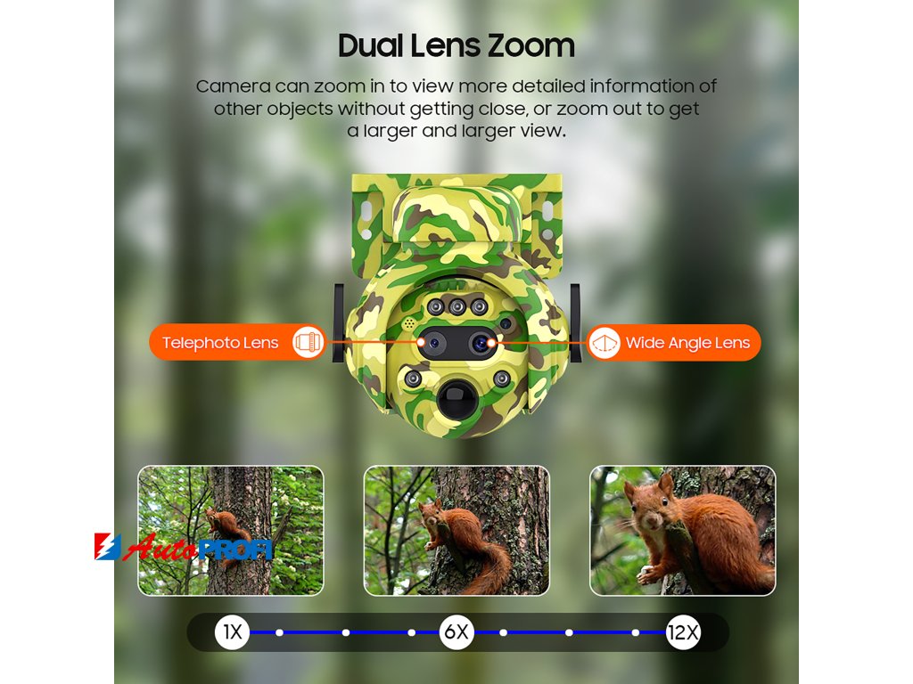 - 12x manuální zoom: Přiblížení s ostrostí až do 70 metrů vám umožní detailně sledovat každý pohyb.