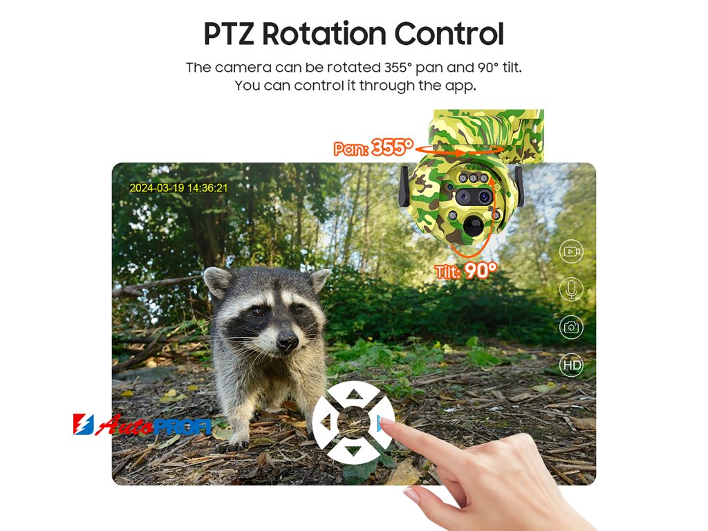 - Široké zorné pole: PTZ kamera nabízí horizontální otočení o 355° a vertikální o 90°, což vám poskytne plnou kontrolu nad sledovaným prostorem.