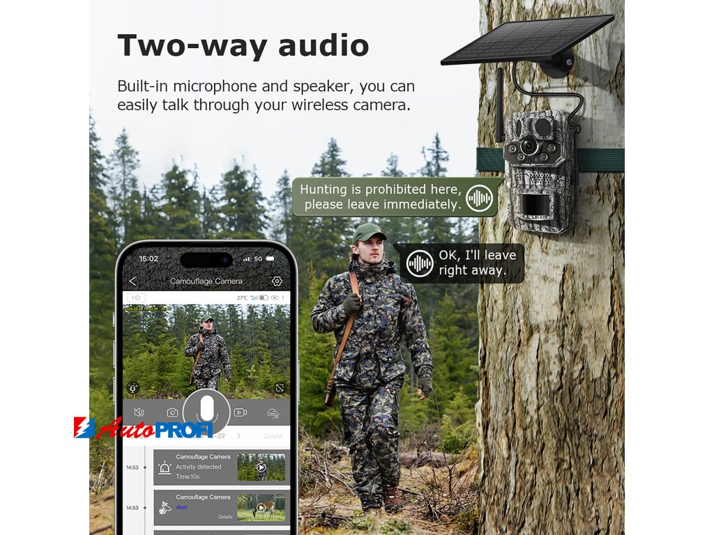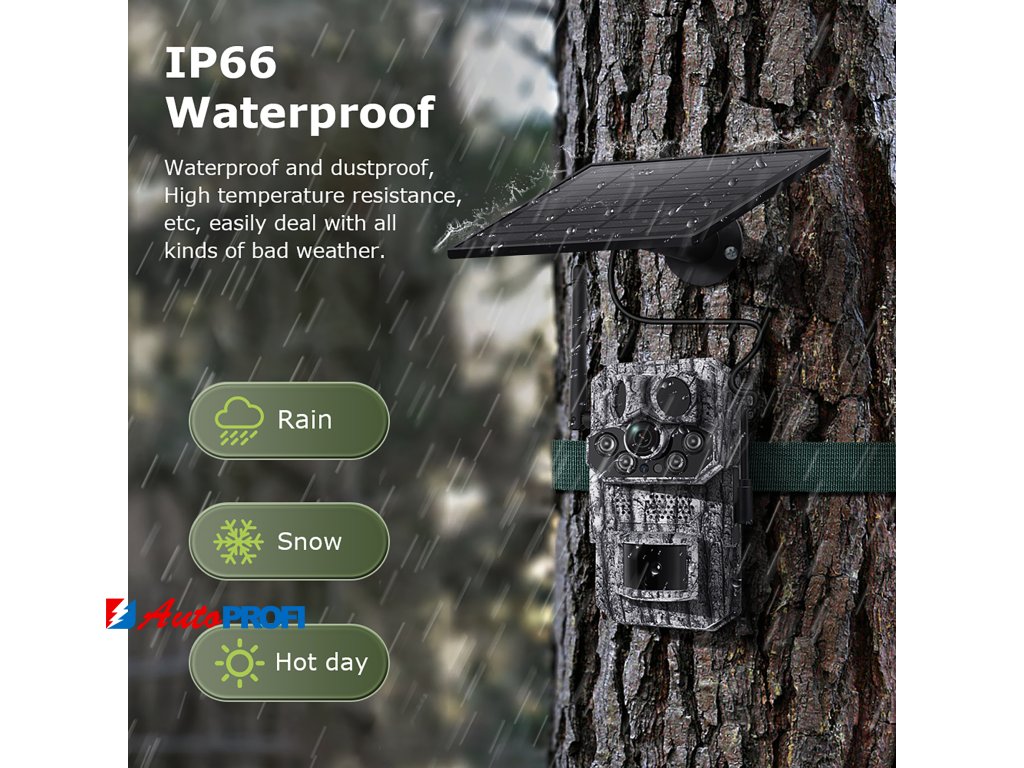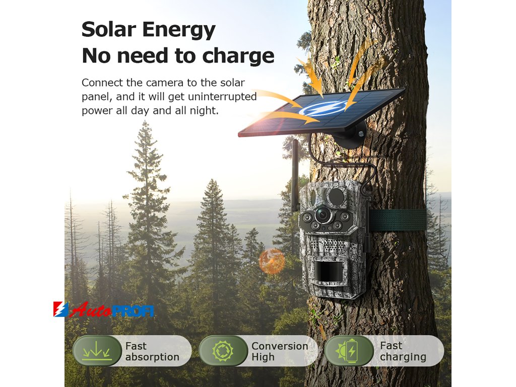 - Solární napájení: 5W monokrystalický křemíkový solární panel zajišťuje ekologické a udržitelné napájení, doplněné o výkonnou baterii s kapacitou 7800mAh.