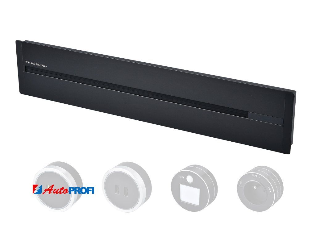 Zápustná zásuvková lišta Viking LZ60 má délku 60 cm, umožňuje připojení až 7 zásuvkových modulů a je k dispozici ve dvou barevných variantách.