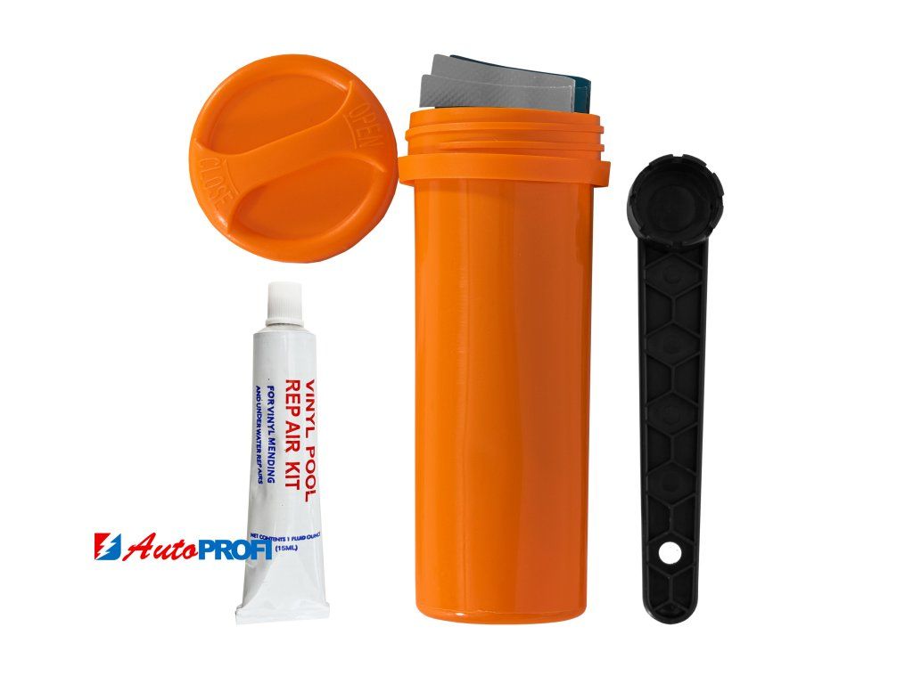 Praktická sada pro opravu paddleboardů, kajaků a jiných nafukovacích produktů • Klíč k utažení ventilů • Lepidlo • Vinylové záplaty • Šroubovací obal