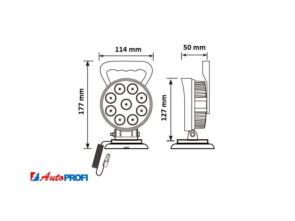 WL-728WM LED světlo kulaté, bílé, 9x3W, ø114mm, magnet, ECE R10