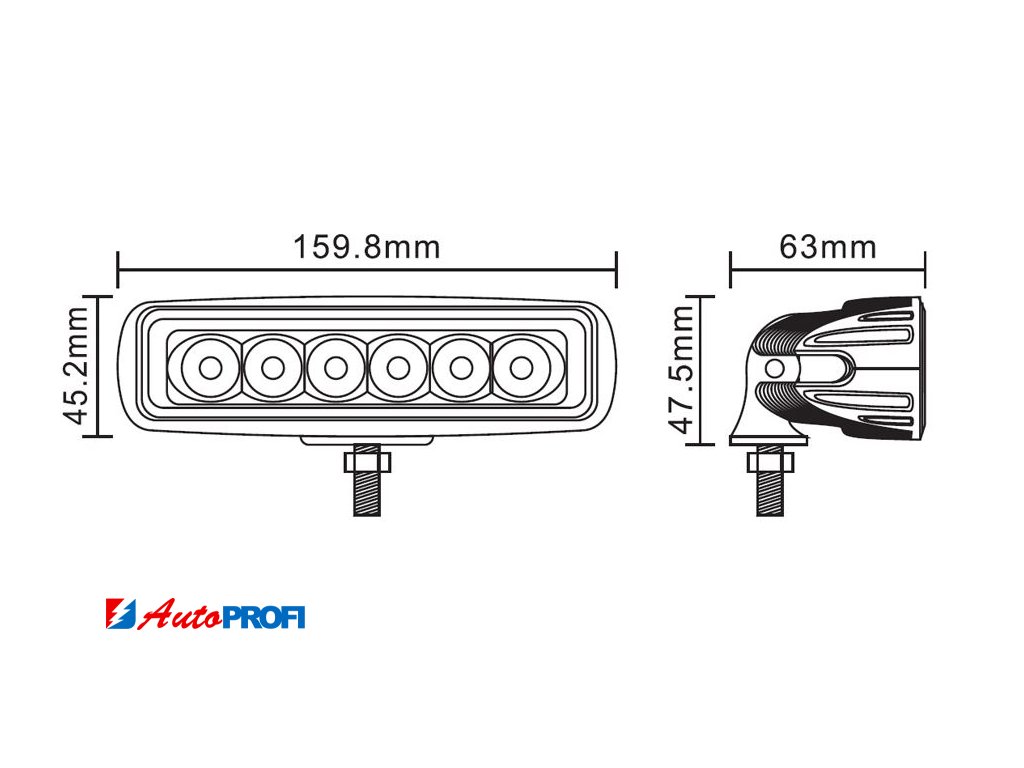 WL-804 LED světlo obdélníkové, 6x3W, 160x45x63mm, ECE R10