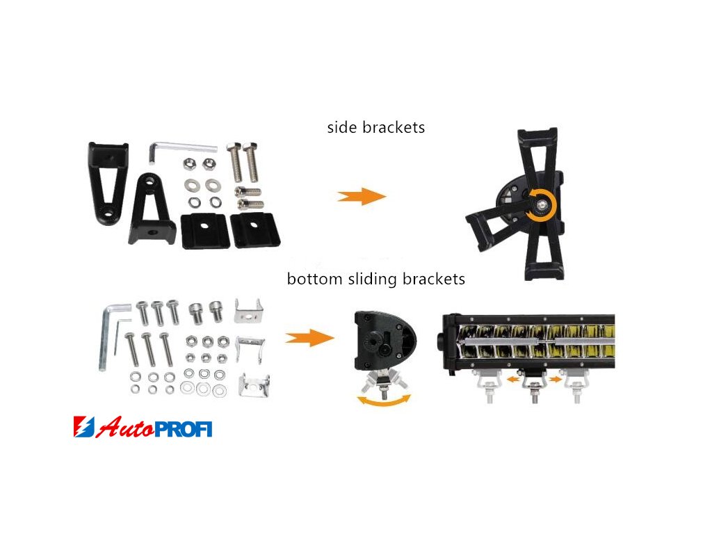 • montáž na držáky boční nebo spodní