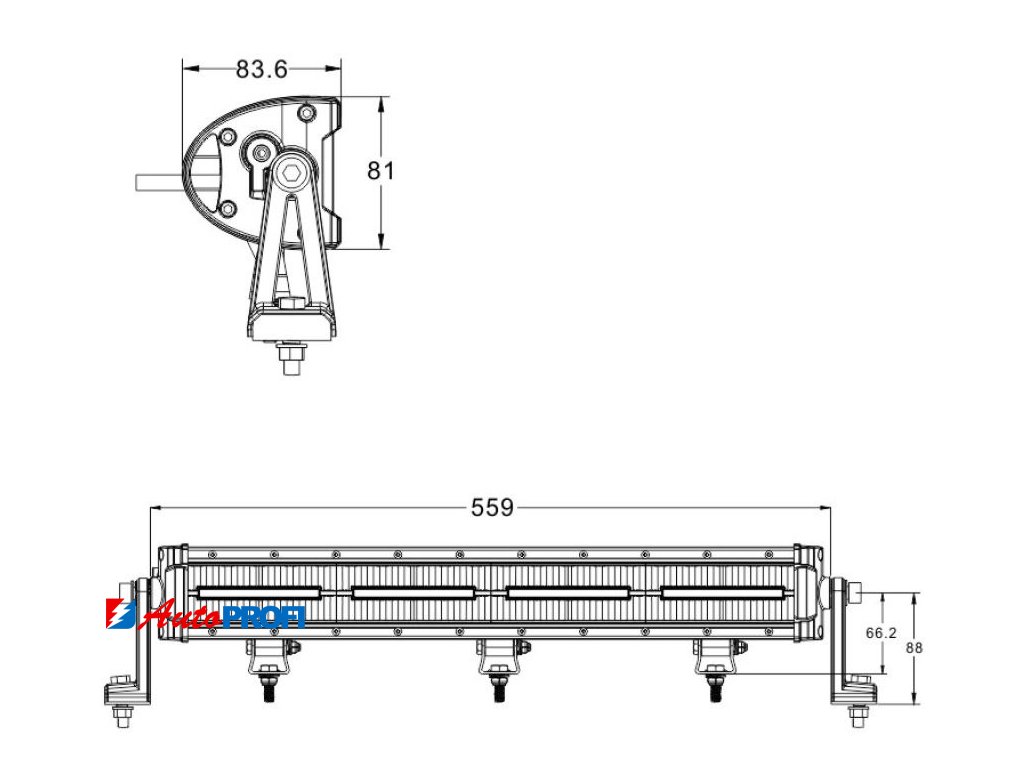 • vnější rozměry: šířka 570 mm, výška 81 mm, hloubka 83,6 mm