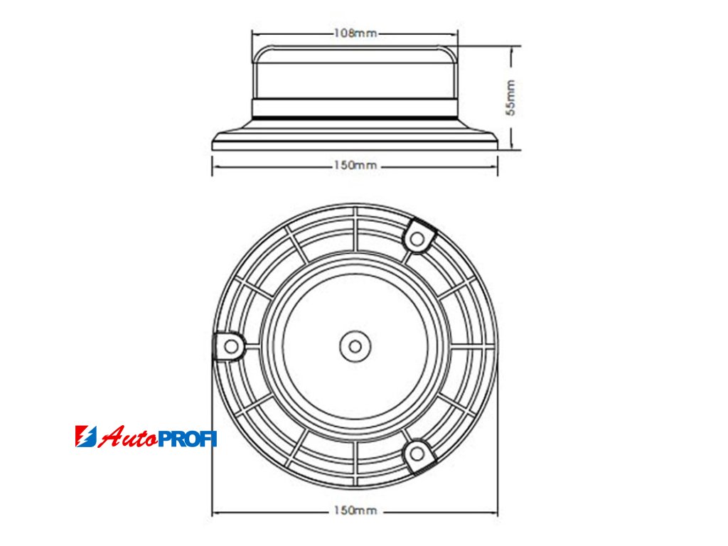 • rozměry: průměr základny 150 mm, průměr krytu 108 mm, výška 56 mm