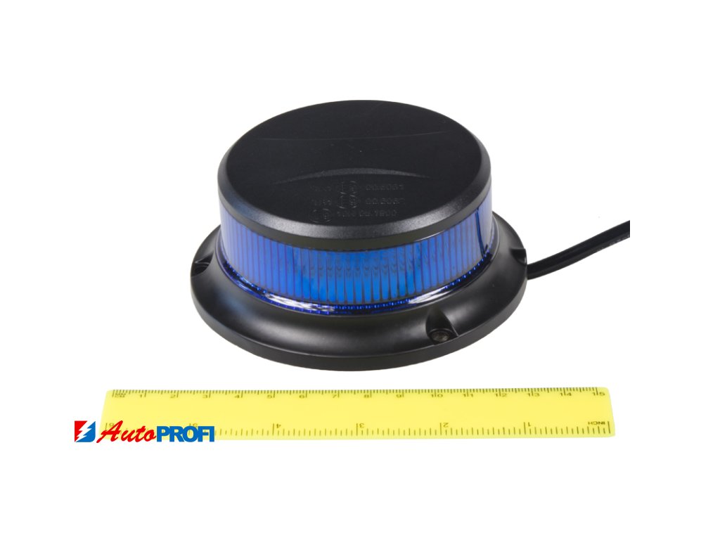 Profesionální modrý LED maják s výrazným výstražným efektem. Určen pro pevnou montáž pomocí šroubů.