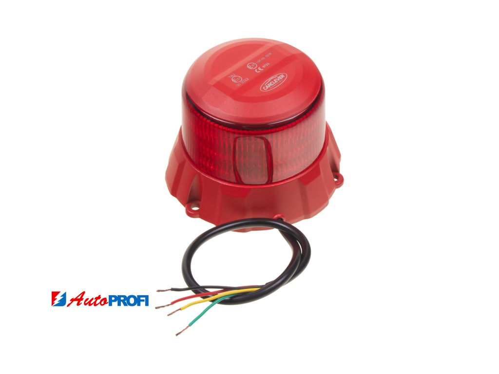 Profesionální robustní červený LED maják s červeným hliníkovým obalem a výrazným výstražným efektem. Určen pro pevnou montáž pomocí šroubů.