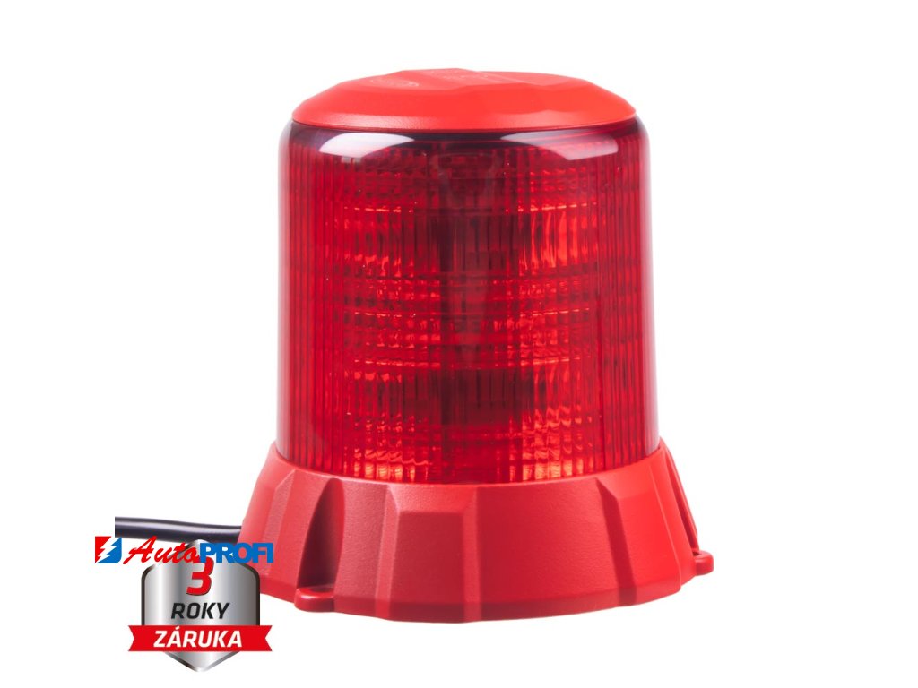Profesionální robustní červený LED maják s červeným hliníkovým obalem a výrazným výstražným efektem. Určen pro pevnou montáž pomocí šroubů.