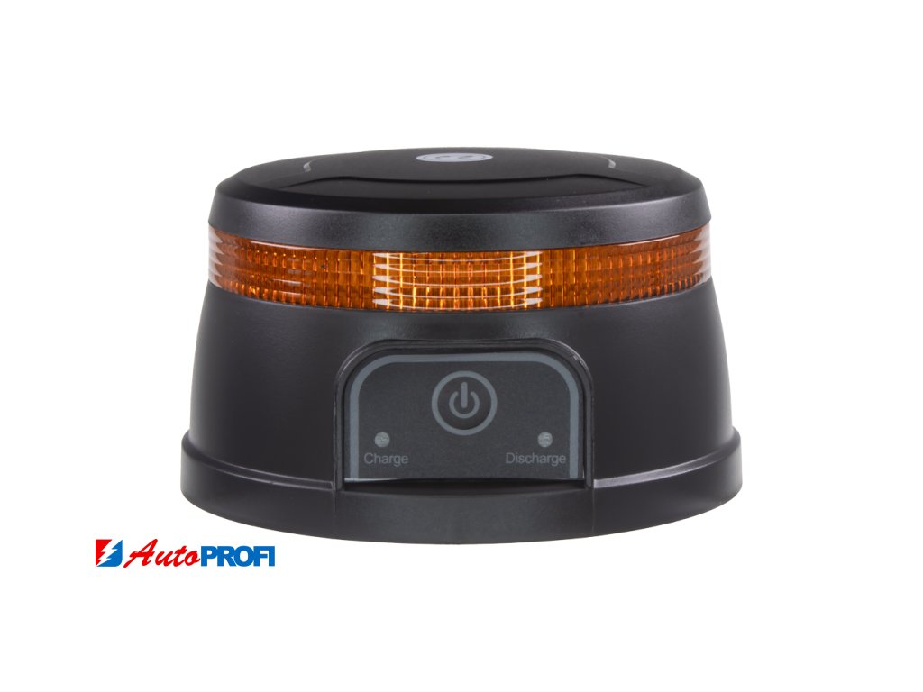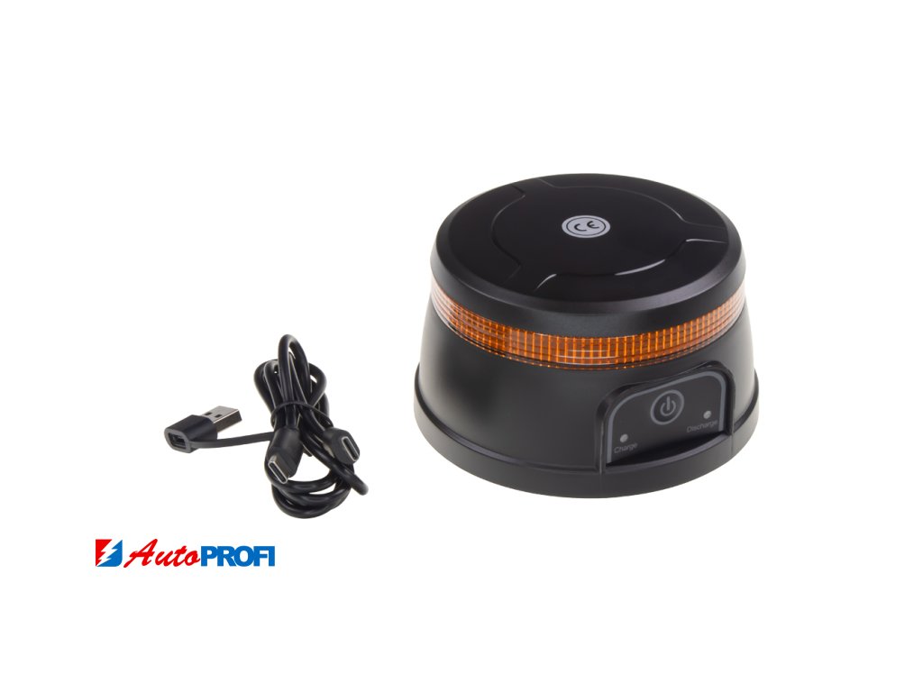 Akumulátorový nabíjecí výstražný oranžový maják s LED technologií a zábleskovým / otočným režimem. Určen pro uchycení pomocí magnetu.
